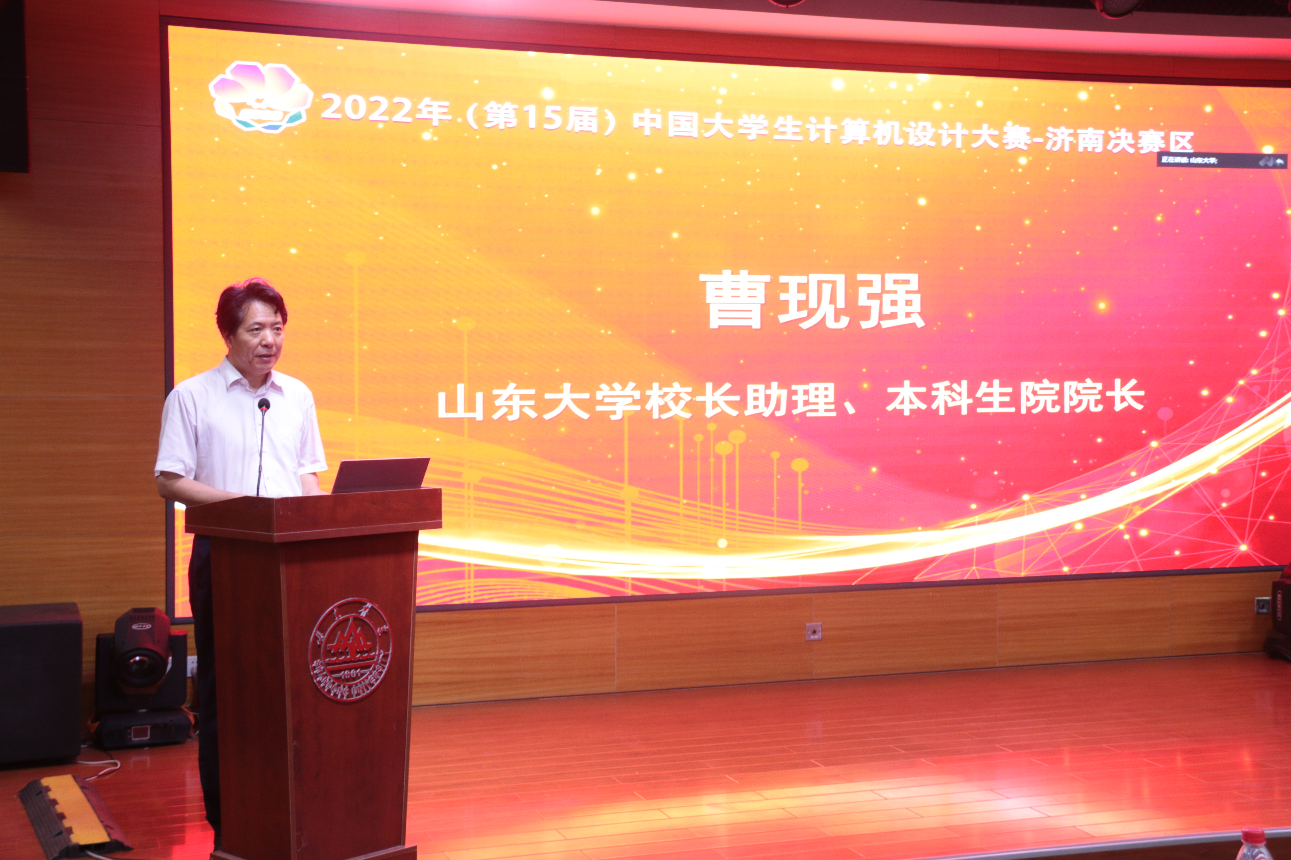 曹现强在发言中对赛事取得圆满成功表示祝贺,他提出为数字化智能化时代培养人才具有重要意义,学科竞赛对人才培养发挥了重要作用,祝愿大赛今后越办越好,也承诺“山东大学会积极参与,为大赛的发展做出应有的贡献”。
